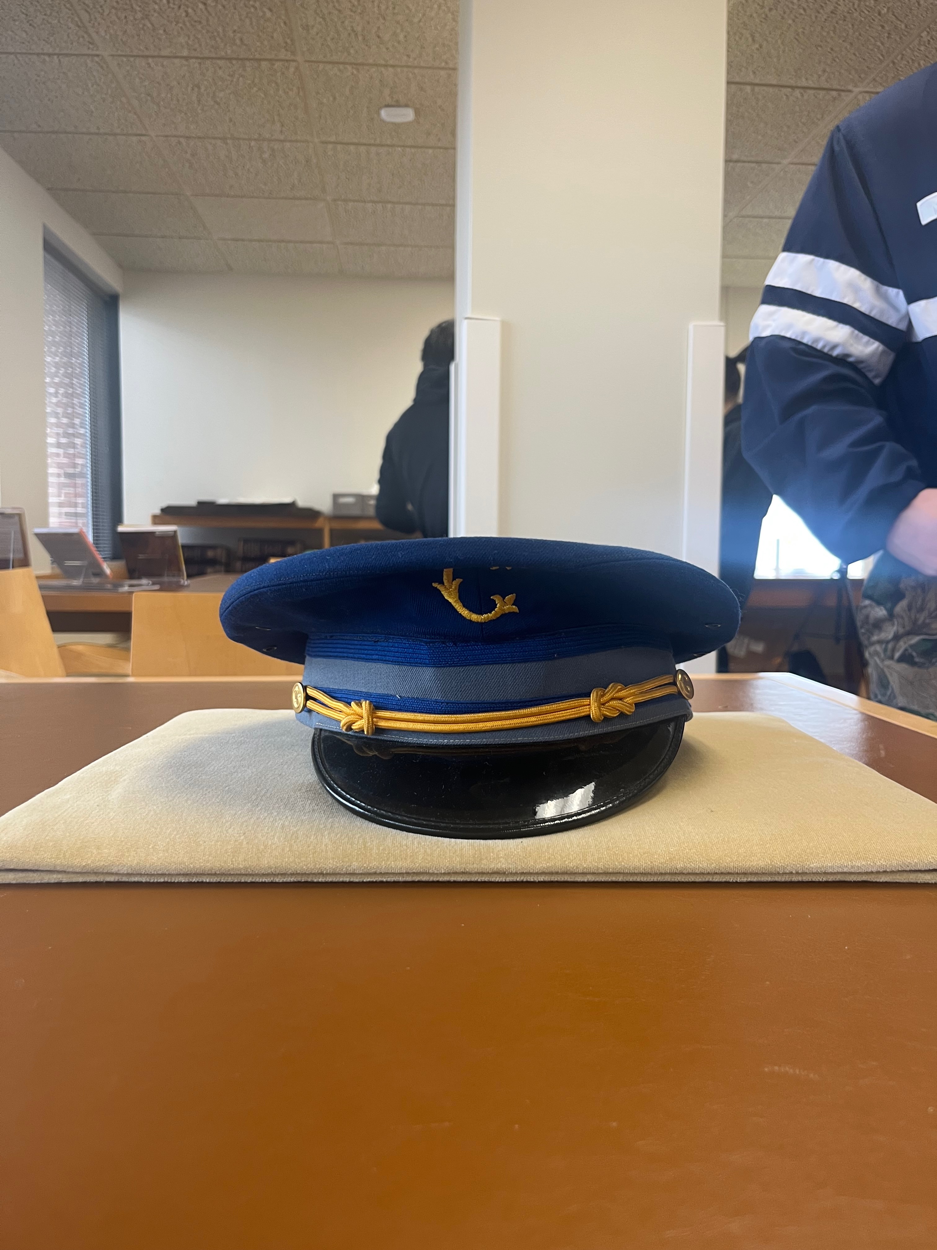 - Hat with gold rope along the brim and a gold 'C' embroidered on the front.