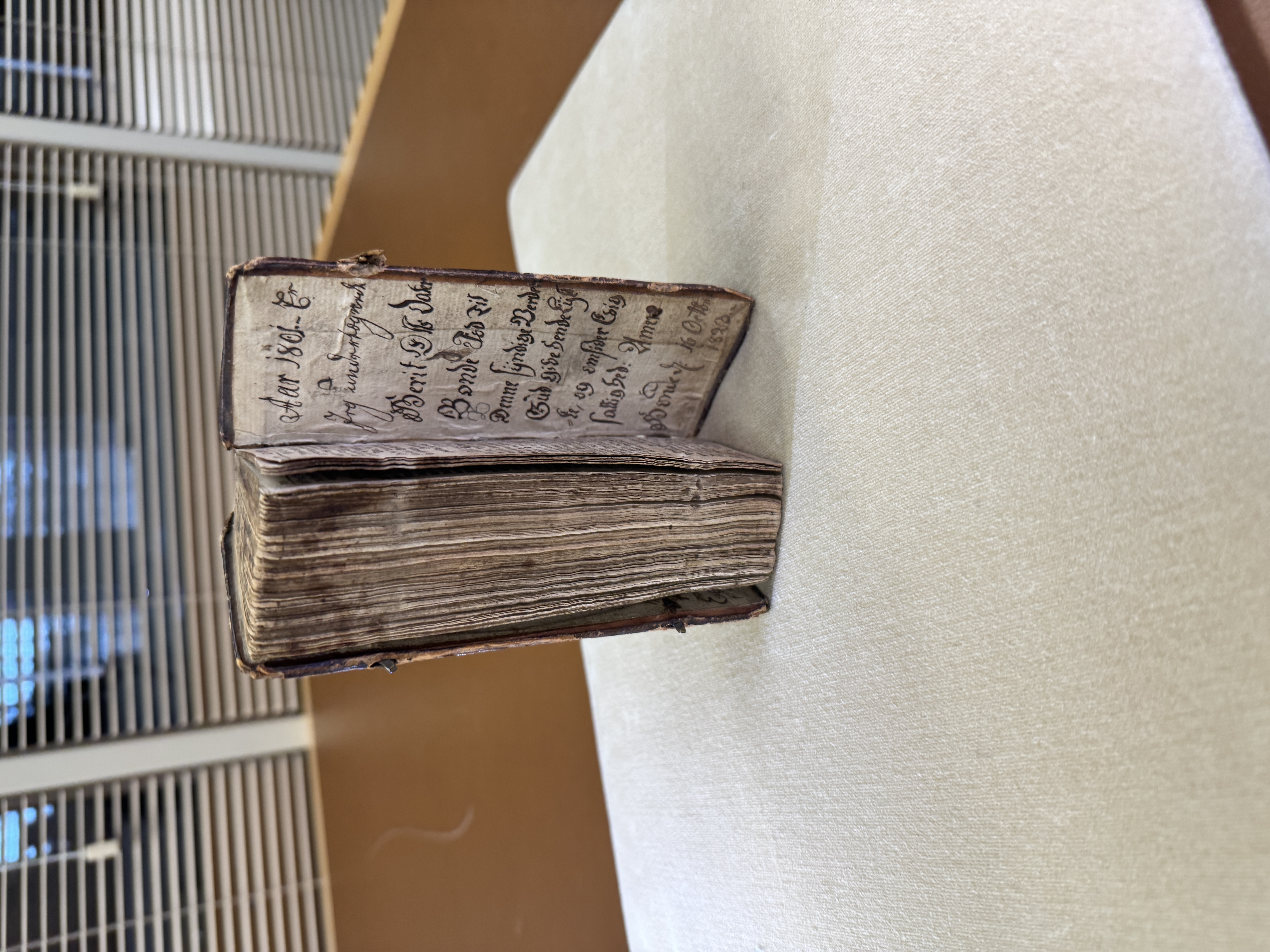 - Bible that belonged to Berit Olsdatter Egge, in another language, likely Norwegian.