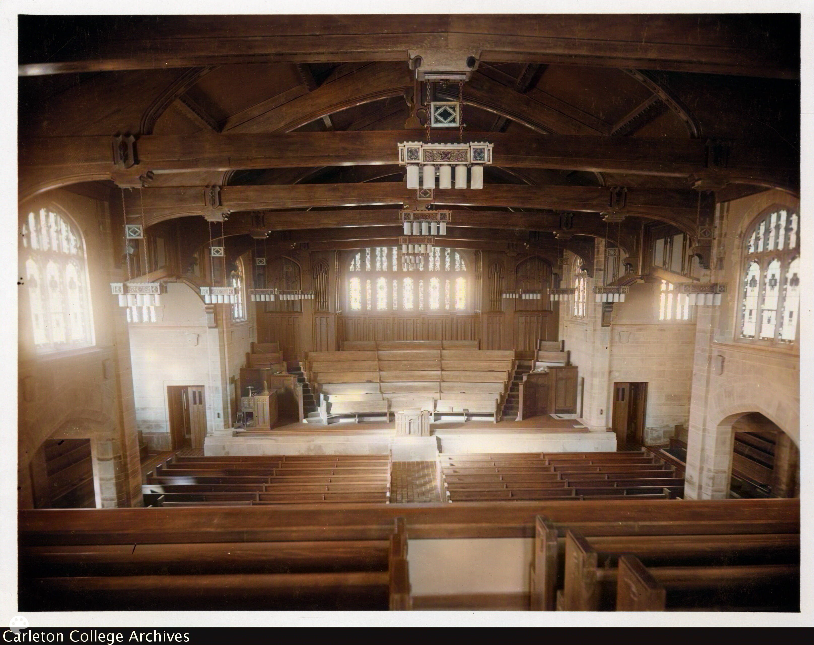 Stork, Harvey E., “COLORIZED: Interior of Skinner Memorial Chapel,” Digital Objects of Carleton, accessed April 24, 2026, https://dgah.sites.carleton.edu/digtialobjects/items/show/205.